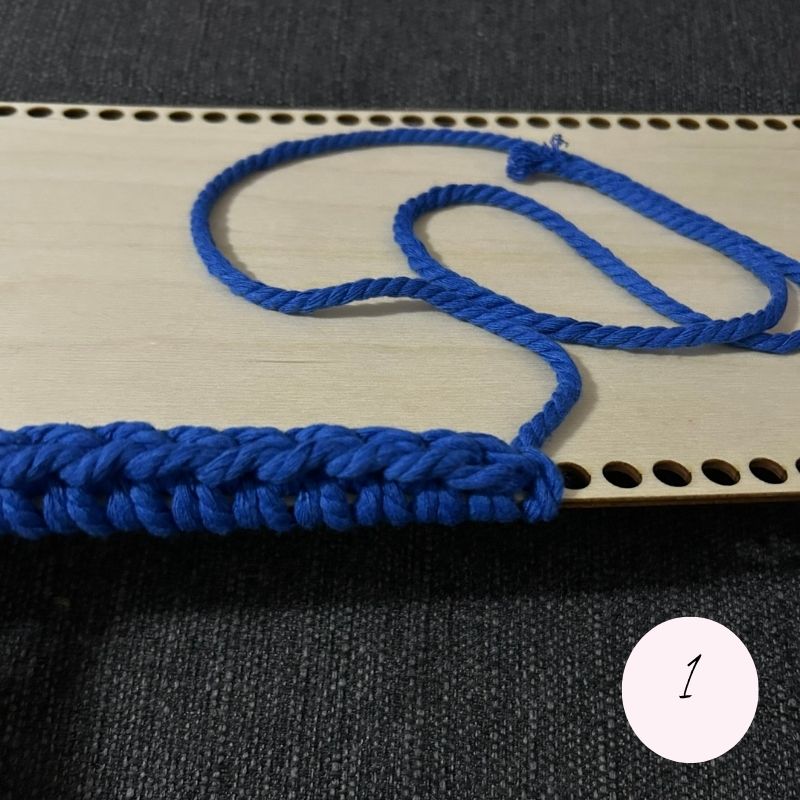 Na začiatku si necháme dlhší koniec priadze – budeme ho používať na nenápadné spájanie prvého a posledného očka v každom riadku , aby spoj nebolo vidieť.