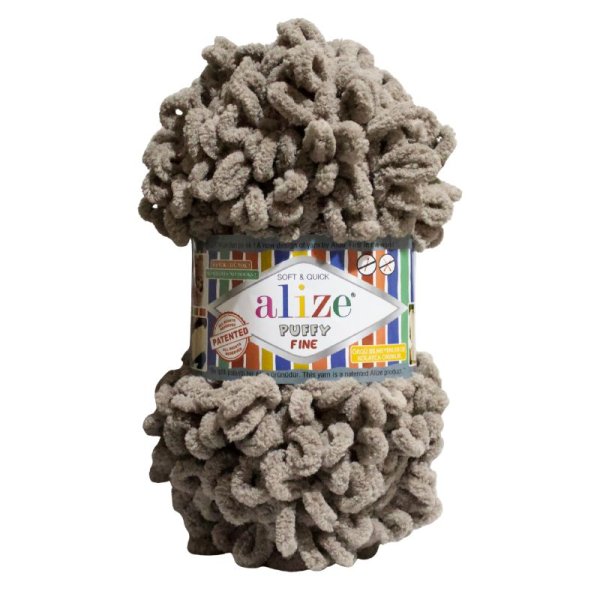 Alize Puffy Fine je jednofarebná špeciálna priadza, na ktorú nepotrebujete ihlice ani háčik, je vyrobená zo 100% mikropolyesteru, čo jej dodáva hebkosť, nadýchanosť a hrejivosť. Jej očká sú jemnejšie a menšie, ako pri klasickej Alize Puffy priadzi, vďaka čomu vytvára hustejší a detailnejší úplet, ktorý vyzerá ako tradične pletený, spracujete ju veľmi jednoducho vlastnými rukami. Vlákno priadze má maličké vlásky, teda pôsobí ako plyš. Priadza je veľmi ľahká, praktická a ultra hebká chlpatá detská priadza s predpripravenými očkami. Vhodná na šály, deky, prikrývky či obliečky na vankúš.