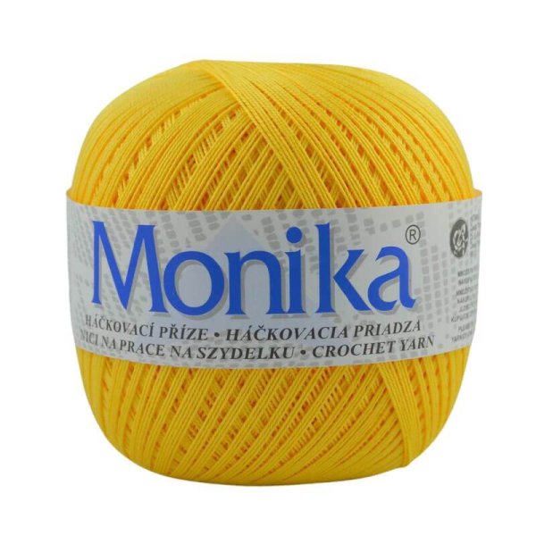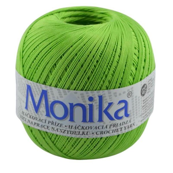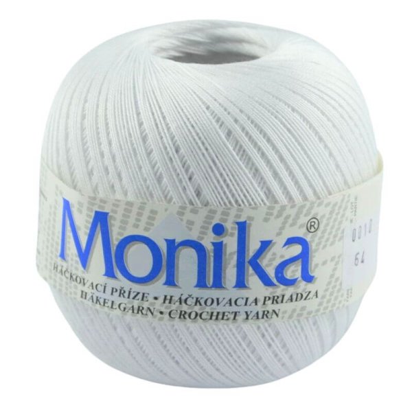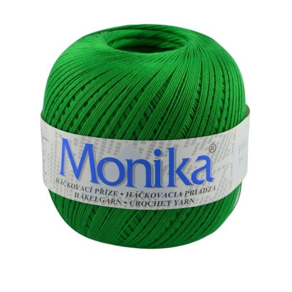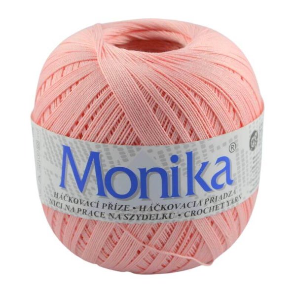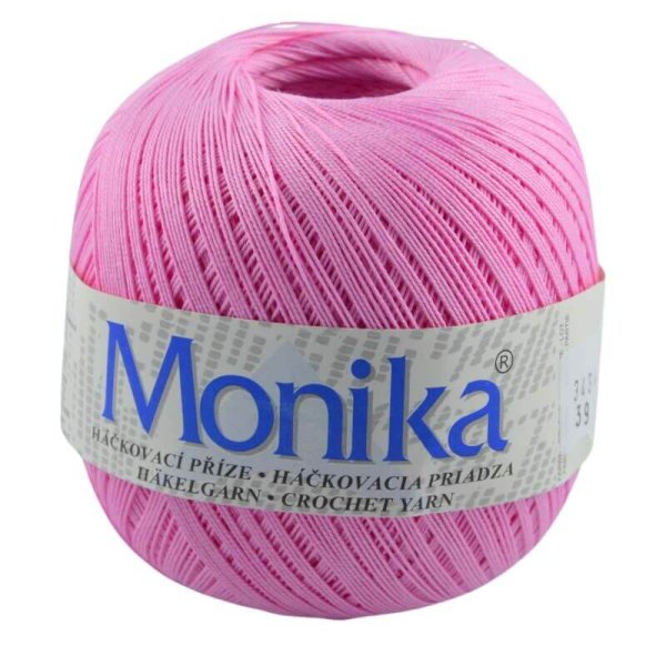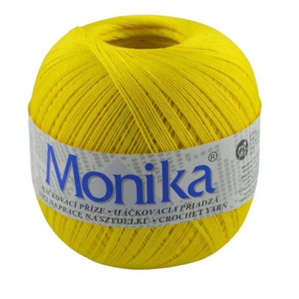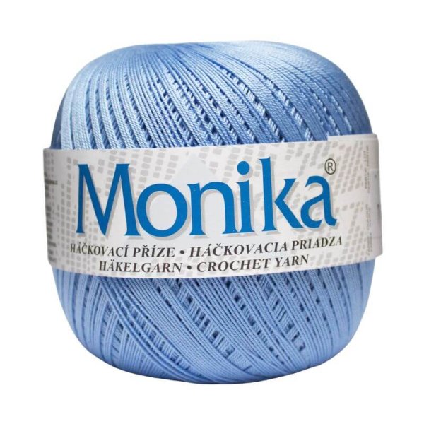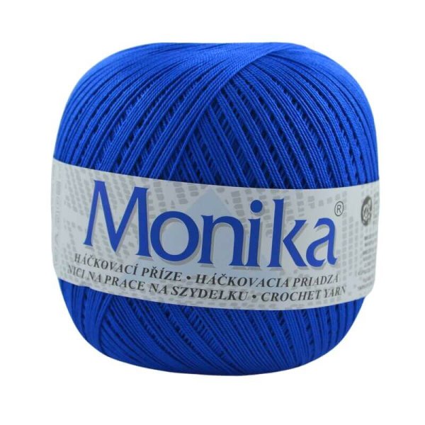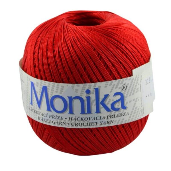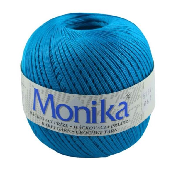 Háčkovacia priadza Monika je vhodná na háčkované topy, obrusy, záclony a dečky. Je vyrobená z kvalitnej bavlny a veľmi obľúbená. Ponuka širokú paletu farieb.
